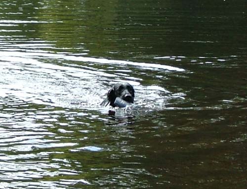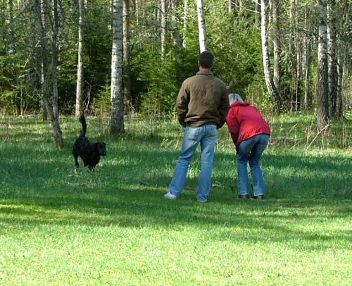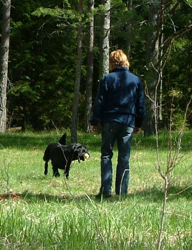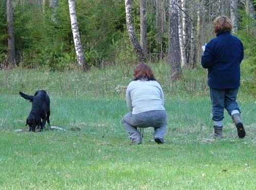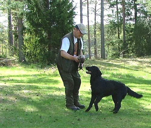 skogen och dels kastade/kvackade ut apporter och dels smög